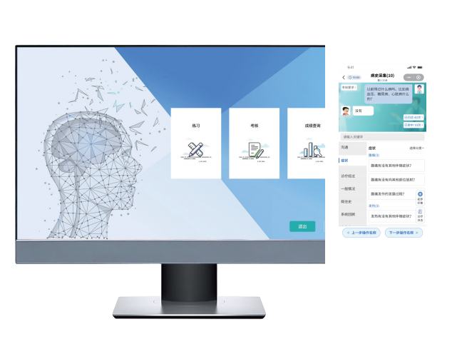 本系统采用由国家医学考试中心构建的CTA框架和CTA测评指标,对临床思维能力进行分段考核。考核分为四个不同的临床情景:初诊信息收集、复诊病情分析、复诊或住院临床诊疗、病情变化动态决策。每个临床情景的模拟病例各自独立,考查的CTA指标各有侧重并逐层递进,以实现对考生临床思维能力的全面判断。